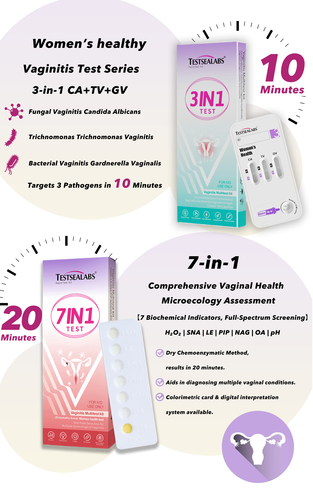 For far too long, vaginal discomfort has been a silent struggle for women—embarrassment to speak up, guesswork for self-treatment, and long waits for lab results. Testsealabs, rooted in women’s health diagnostics, launches 3-in-1 & 7-in-1 Vaginal Health Test Kits to break the dilemma. We turn professional clinical testing into easy at-home self-check, letting every woman master her vaginal health with precision, speed and privacy.